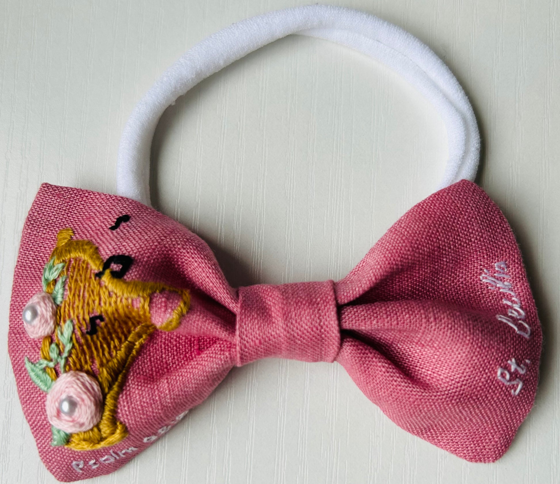 St. Cecilia Hand-Embroidered Hair Bow